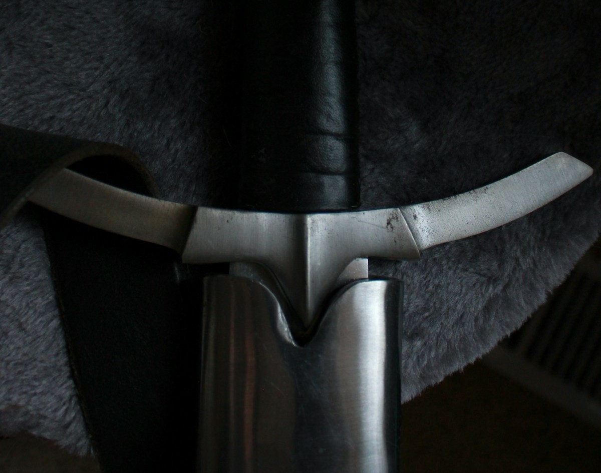 The sword is held overhead with the point up, arms raised. It looks almost like you are presenting the sword to the sky. In practice, this guard defends beautifully against descending cuts: the opponent's blade meets your crossguard and slides away, and you can transition immediately into a thrust or cut of your own. Some practitioners call it the Crown because it sits above everything else.